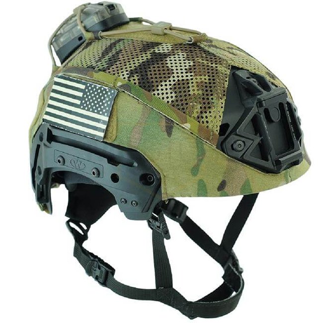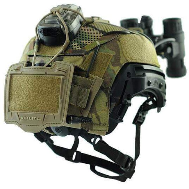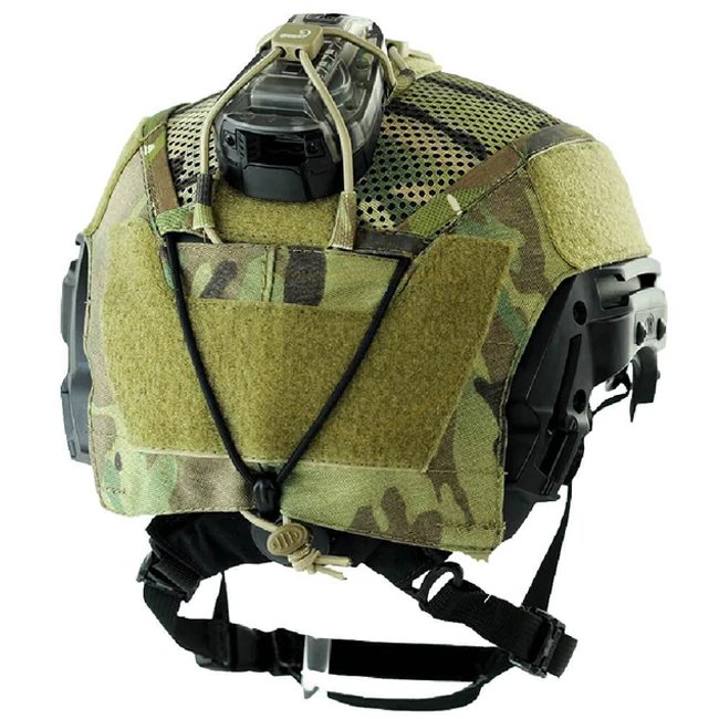Voll integrierter Helmüberzug für Team Wendy Bump Helme, ausgestattet mit Agilite präziser Passform, hinteren Schlaufen für NVG-Batterien, Polymer-Bungee-Kanälen und Kabelmanagement. Einfach in Sekunden zu installieren, enthält universelles hinteres Fach