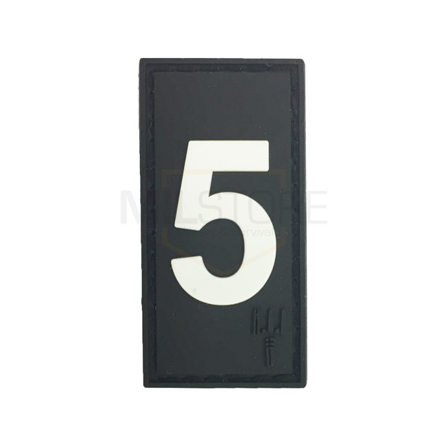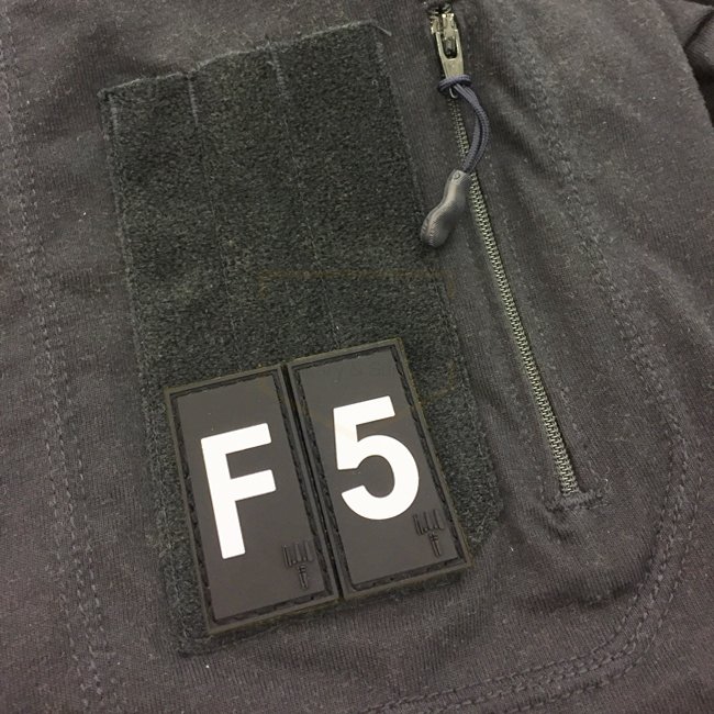 Velcro backed, dimensions: 50 x 25mm. Suitable for Pitchfork Number 5 Patch in black.