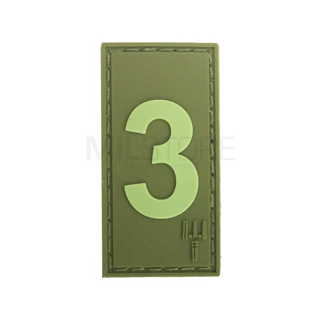 Pitchfork Number 3 Patch - Olive. Velcro backed, 50 x 25mm.