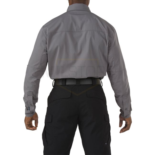 5.11 Stryke Shirt Long Sleeve - Storm - XS is a lightweight and durable shirt made of 62% Polyester and 38% Cotton. Ideal for all-day wear with a comfortable fit.