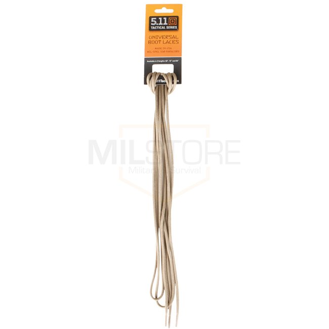 Get these USA-made Mil-spec 550 paracord boot laces from 5.11 Tactical. Available in Coyote color with clear tips in three sizes: S (160mm), M (180mm), and L (200mm).
