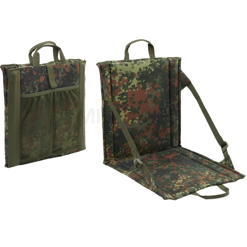 Brandit Foldable Seat - Flecktarn: Folding seat with backrest, ideal for camping, festivals, hiking, beach vacations, or daily use. Net bag for bottles, stable handles, Velcro fastener. Soft seat, adjustable backrest, robust polyester, easy to clean. Shel