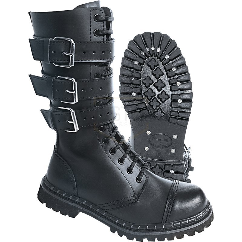Stay stylish and protected in Brandit Phantom Boots 3-Buckle. Features steel cap, real leather outer and inner material, durable rubber sole.