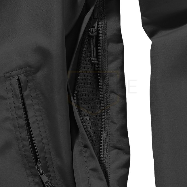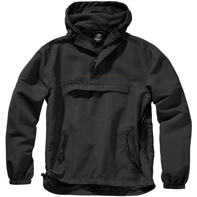 Stay protected against wind and rain with the Brandit Summer Windbreaker in Black. Featuring a mesh lining, hood with drawstring, multiple pockets with zippers, cuffs, and lateral ventilation holes. Made of durable polyester with additional elastic tapes