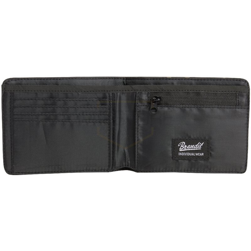 Stay organized with the durable Brandit Wallet Four in Dark Camo. Features an internal coin compartment, four card slots, three extra compartments, and a spacious banknote compartment. Constructed from robust 600DEN polyester with a polyester and chlorofi