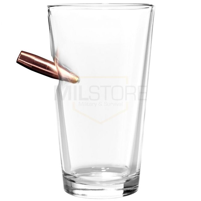 Caliber Gourmet Last Man Standing Pint Glass: Unique, rebellious beer glass with a hand sculpted 50 caliber faux-bullet, perfect for beer enthusiasts, hunters, and veterans!