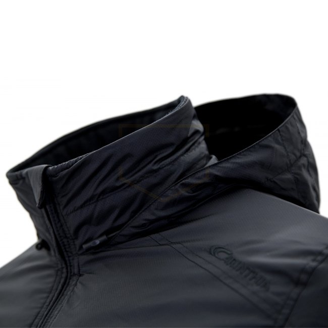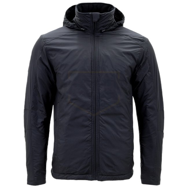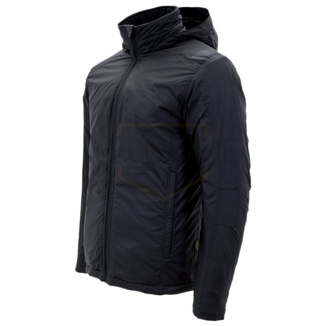 The Carinthia LIG 4.0 Jacket in Black is a water-repellent jacket with adjustable collar, stowable hood, and thermal fleece inner collar. It features large outer pockets, inner wrist warmer, adjustable drawcord at waist, and integrated storage bag. Insula