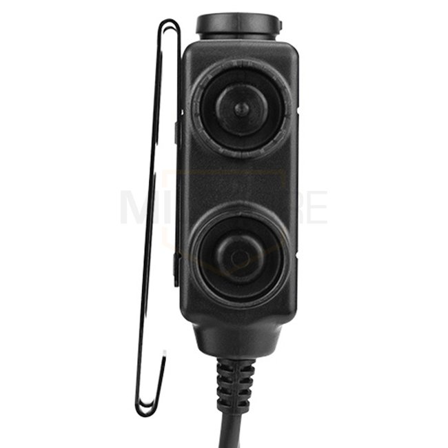 M56 Tactical PTT by Earmor is a dual‑channel PTT adapter compatible with Earmor headsets and MilSpec Nexus TP‑120/U‑174 systems. It integrates two COM ports and independent PTT buttons for dual radio setups and can be customized with different connection cables.