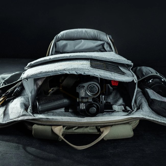 Equipped with a full clamshell main zipper, the FADE Adapt offers fast access to gear. Its internal layout includes a loop-velcro-lined rear panel compatible with hook-backed accessories and holsters. Multiple zippered pockets and mesh compartments keep items organized and secure. The external profile is clean and low-vis, with discreet webbing and concealed carry capability.