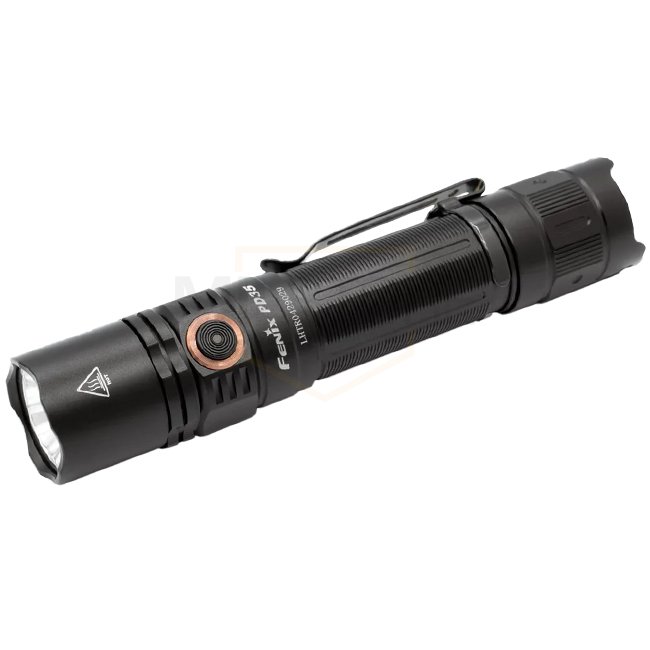 The Fenix PD35 V3.0 delivers up to 1 700 lumens with a beam distance of 357 meters. It operates on the included 18650 Li‑ion battery or two CR123A cells. A tail switch provides quick activation, while a side switch selects brightness levels. The flashlight is IP68-rated for dust and water resistance.