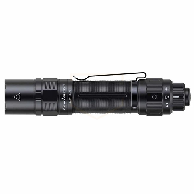 The Fenix PD36 TAC is the tactical variant in the PD series. It features a rotary tail switch to instantly toggle between Tactical mode (high output + strobe only) and Duty mode (full range of brightness levels + strobe). It is powered by a 21700 battery, reaching about 274 meters in beam throw.