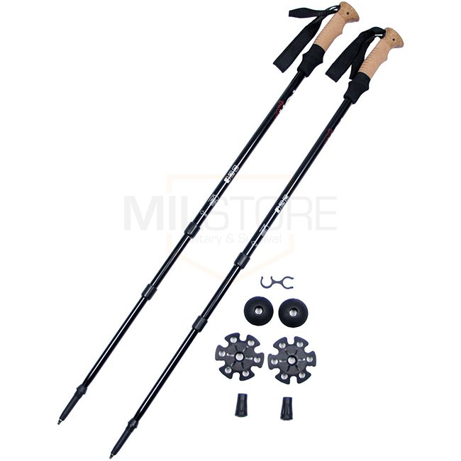 Lightweight and durable, the FoxOutdoor Aluminium Trekking Poles are stable trekking poles featuring an ANTISHOCK spring system for added comfort. With simple height adjustment from 68 to 135 cm, an ergonomically shaped cork handle, and adjustable hand lo