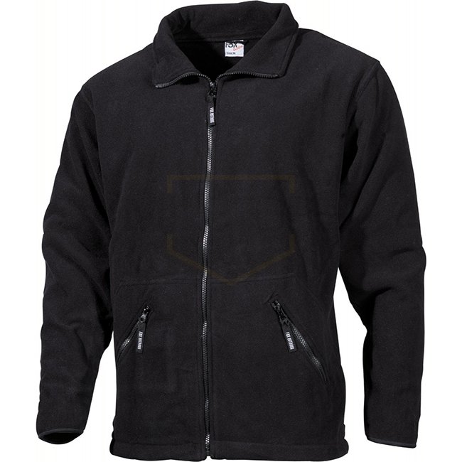 FoxOutdoor Arber Fleece Jacket in Black XL. Front zip, 2 hip pockets with zip, inside patch pocket with flap and velcro, drawstring on sleeves, elastic drawstring with cord stopper on the waist. Material: 100% Polyester.