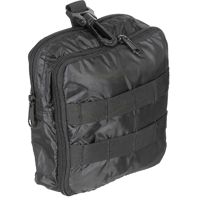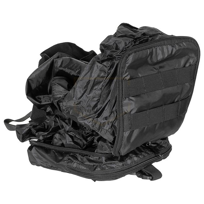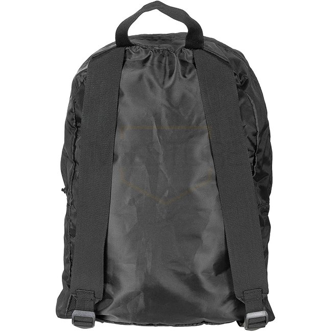 Practical FoxOutdoor foldable backpack in sleek black color with adjustable straps, multiple compartments, Molle attachment loops, carabiner, and a capacity of approx. 30 liters. Made of 100% polyester, this versatile bag offers convenience and style.