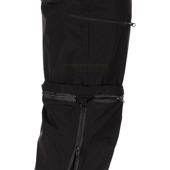 Functional and versatile FoxOutdoor RACHEL Trekking Pants in Black, perfect for both men and women. Lightweight, breathable, and quick-drying with convenient features like T-Zip to shorten legs without removing shoes. Multiple zip pockets and elastic wais