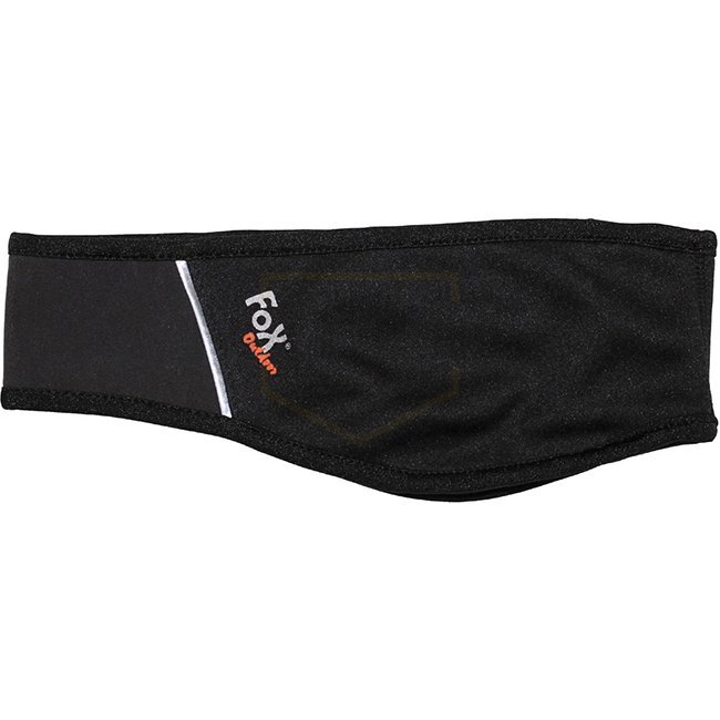 FoxOutdoor Soft Shell Headband. Water & Windproof. Black. L/XL. 2 reflective stripes. "Fox Outdoor" logo. Material: 100% Polyester.