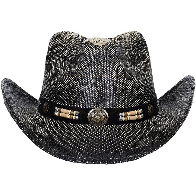 FoxOutdoor Straw Hat Texas - Black. One-size-fits-all, with elastic headband. Made of 100% Paper.