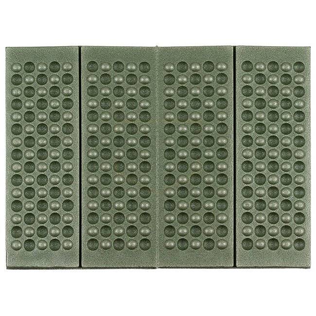 FoxOutdoor Thermal Seat Pad Foldable - Olive. Sturdy special foam, anti-slip, insulating nap structure. Pack size: ca. 30 x 10 x 4 cm. Dimensions: ca. 39 x 30 x 1 cm. Weight: ca. 30 g. Material: 100% Polyethylene (XPE).