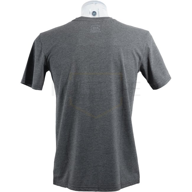 Glock Perfection Workwear T-Shirt in Grey, featuring logo stitch on the chest and logo print on the back. Made of 60% cotton and 40% polyester, washable up to 60°C.