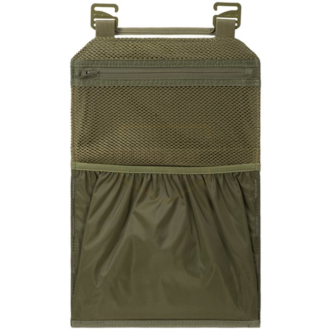 Large organizer insert compatible with various Helikon-Tex backpacks. Features a carry handle, velcro panel for the Versatile Insert System®, zippered pocket, and elastic cuff pocket. Can be carried in a backpack or hung on a car seat. A4 format with loop