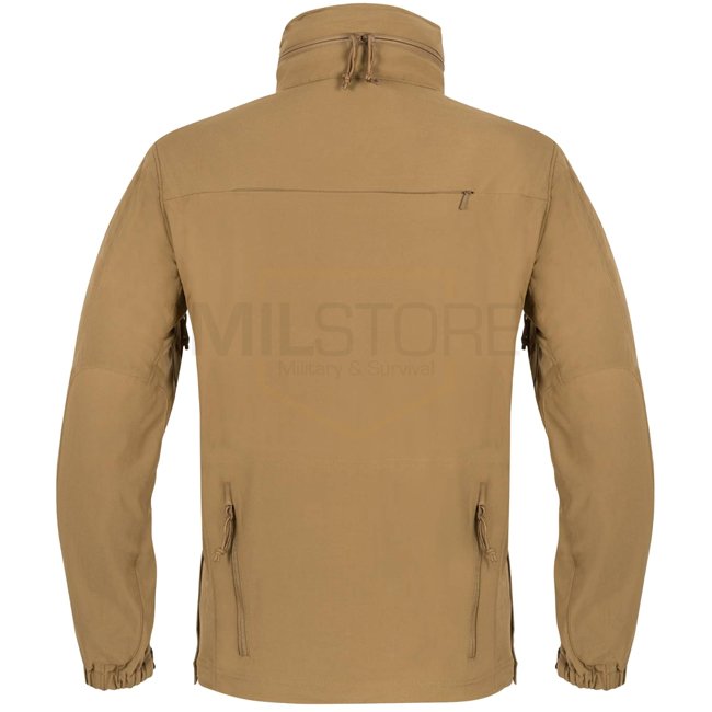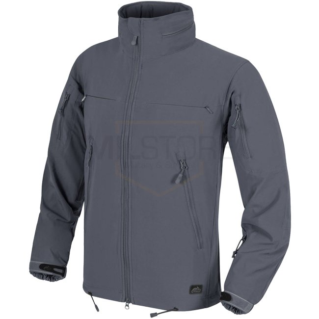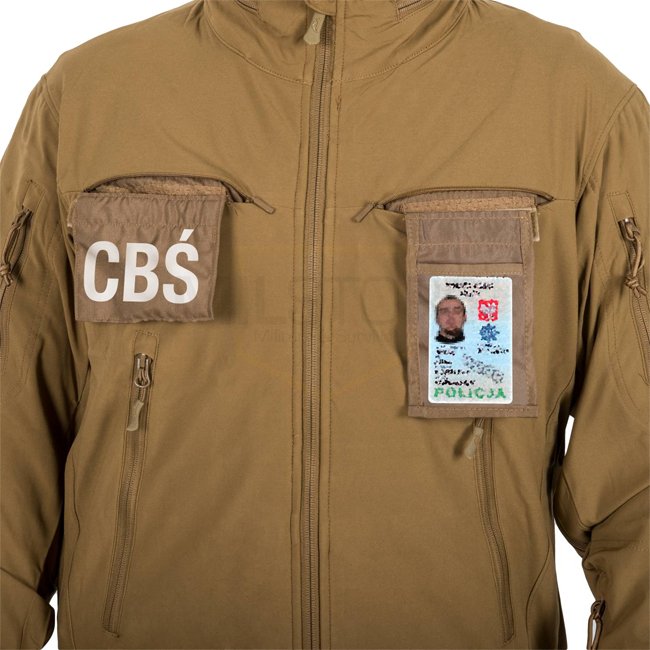 "Cougar® is an urban light outer (softshell) garment. The fabric used protects from wind and light rain. Collar-stowable hood is easily adjustable via pocket-accessible drawstring and rear tab. The hood is quickly accessible, with hood pocket zippered with a two-way zipper. The jacket has three concealed ID panels, suitable for law enforcement stake-out jobs: two smaller front ones and one larger on the back. Two Velcro-attached blank ID panels are enclosed for the user to embroider or print suitable identification. Breast pockets have small organizers and D-rings for lanyards, upper-sleeve pockets have wiring eyelets. There’s a fairly large velcro-closed inner pocket at lower left.