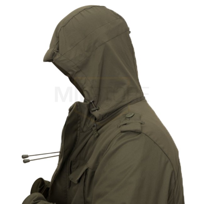 Helikon-Tex Covert M65 Jacket is a modern field jacket based on the iconic M65 pattern. It will be perfect for covert operations when discretion and unconventional methods of work are important. Equipped with functional outer pockets, it allows you to conveniently carry items necessary for performance and self-defense. Thanks to the use of a durable DuraCanvas fabric it will also be an excellent choice for everyday use, especially in the autumn and winter period, when it will protect the user from light rain and wind.A unique patent used in the M65 jacket is a pocket that can be detached and used as a separate fanny pack for documents or a phone. Inside, symmetrically on the left and the right side, there are pockets for magazines. The two outer pockets on the sides can serve as improvised dump pouches.This classic military jacket has been additionally reinforced in places exposed to damage and equipped with a hood hidden in the collar. The front is fastened with strong Canadian buttons and a "break-away" zipper which allows immediate unfastening of the jacket.