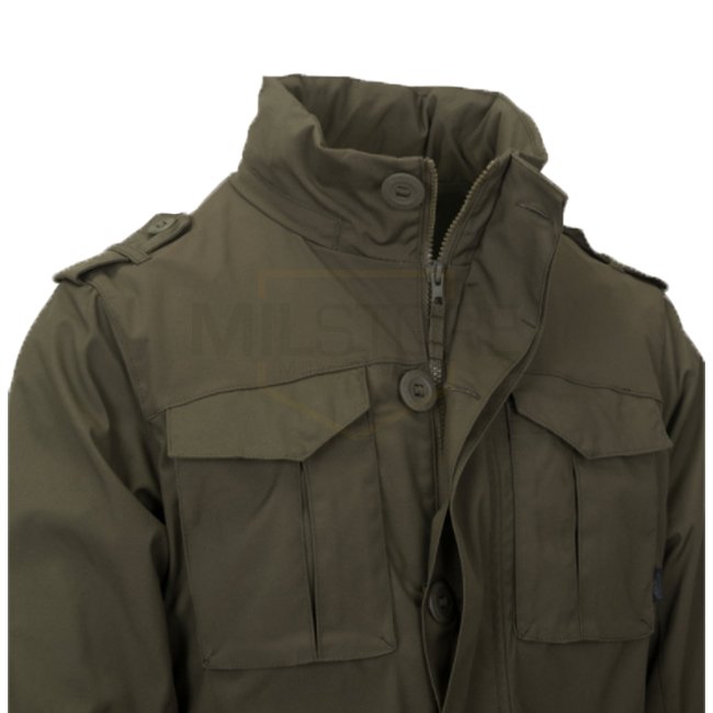 Helikon-Tex Covert M65 Jacket is a modern field jacket based on the iconic M65 pattern. It will be perfect for covert operations when discretion and unconventional methods of work are important. Equipped with functional outer pockets, it allows you to conveniently carry items necessary for performance and self-defense. Thanks to the use of a durable DuraCanvas fabric it will also be an excellent choice for everyday use, especially in the autumn and winter period, when it will protect the user from light rain and wind.A unique patent used in the M65 jacket is a pocket that can be detached and used as a separate fanny pack for documents or a phone. Inside, symmetrically on the left and the right side, there are pockets for magazines. The two outer pockets on the sides can serve as improvised dump pouches.This classic military jacket has been additionally reinforced in places exposed to damage and equipped with a hood hidden in the collar. The front is fastened with strong Canadian buttons and a "break-away" zipper which allows immediate unfastening of the jacket.