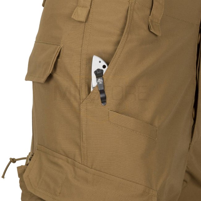• Two thigh cargo pockets with velcro flaps, button and drawstring retention