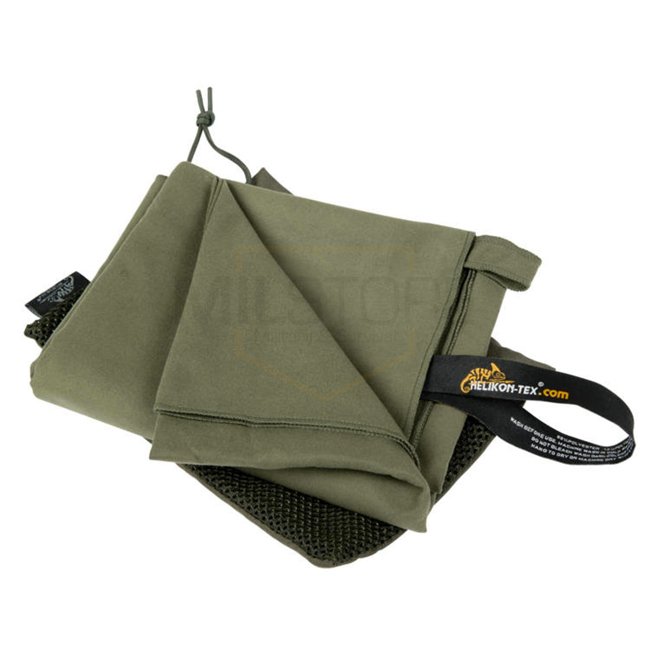 Helikon-Tex Field Towel Large - Olive Green. Lightweight and compact, this large field towel is perfect for outdoor activities. Measuring 130 x 76cm, it provides ample coverage while only weighing 238g. Ideal for camping, hiking, and other adventures.