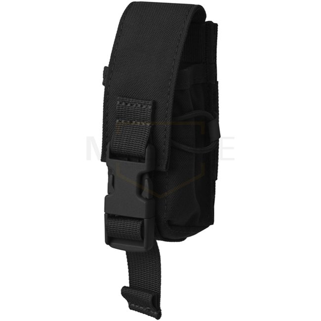 Flash Grenade Pouch is a box-shaped pouch designed for carrying one flash-bang grenade or another item of similar dimensions and shape. The pouch can accommodate most standard flash grenades. It is secured by a flap and allows for easy height adjustment. The pouch has an anti-slip grip for better user comfort.
