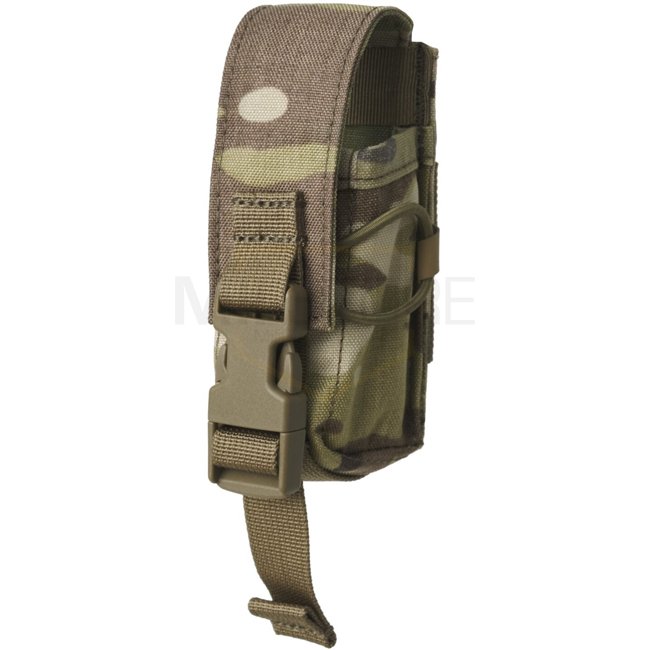 Helikon-Tex Flash Grenade Pouch in Multicam, designed for flash-bang grenades, secure flap, adjustable height, anti-slip grip, 100% Nylon material