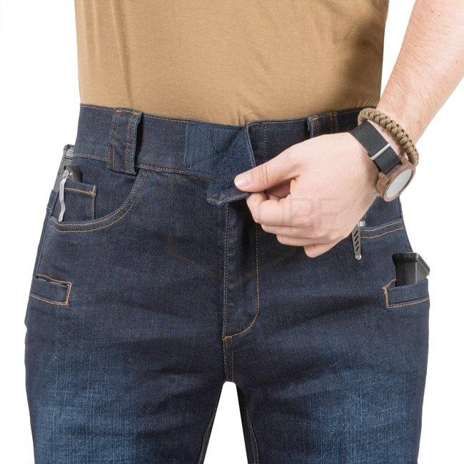 Helikon-Tex Greyman Tactical Jeans are designed for comfort and functionality. Featuring an elastic belt with hook and loop closure, 50mm wide belt loops, classic front pockets, and multiple storage options including internal and smaller front pockets, an