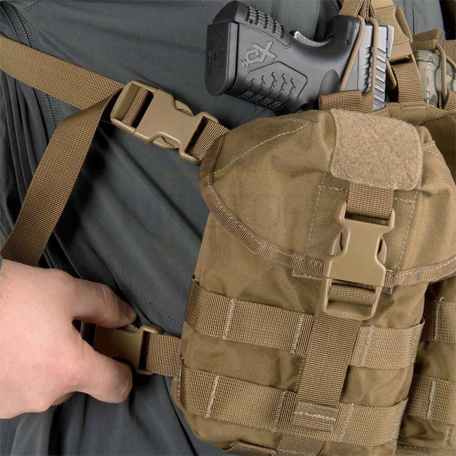 •   Exchangeable inserts with rifle/handgun magazine pouches or handgun holster