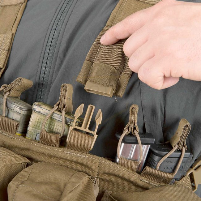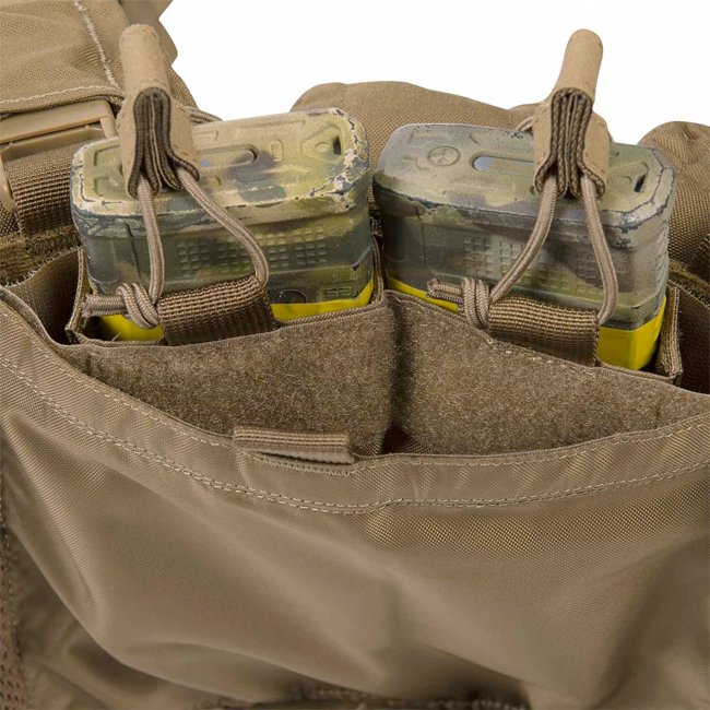 The Guardian Chest Rig is a universal carry platform to accommodate basic ammunition load and personal equipment. Designed to work along with a backpack and belt kit. Depending on the size of magazines the height of the fixed pouches flaps can be adjusted, also exchangeable magazine inserts can be re-arranged accordingly.