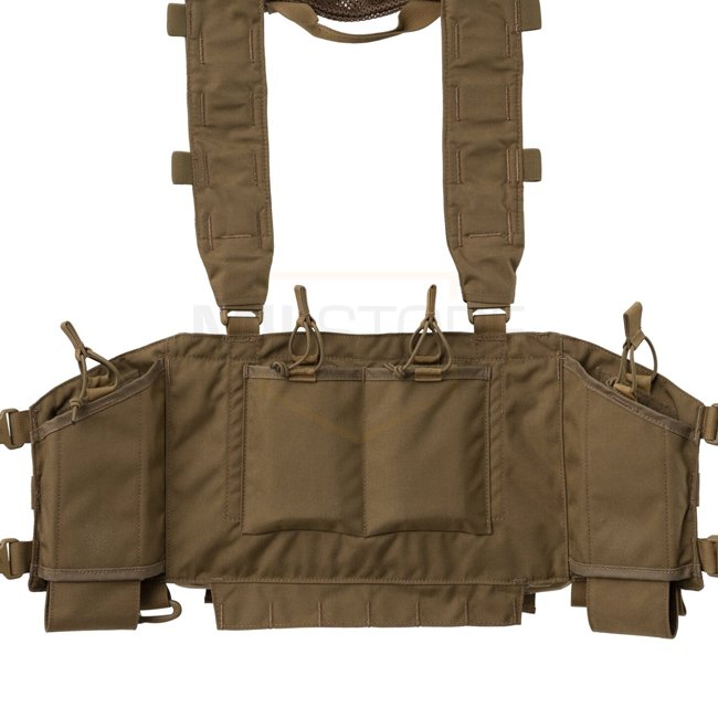 The Helikon-Tex Guardian Recce Chest Rig is a lightweight and versatile chest rig designed for tactical operations and outdoor activities. It features four main magazine pouches compatible with AR/AK magazines, as well as additional storage for small gear like tools, maps, radios and other equipment. The MOLLE-compatible webbing on both sides enables further customization. The adjustable shoulder and waist straps provide a comfortable fit and allows you to wear the Chestrig standalone or over body armor. It's ideal for reconnaissance loadouts, allowing for easy access to essential gear during dynamic situations.