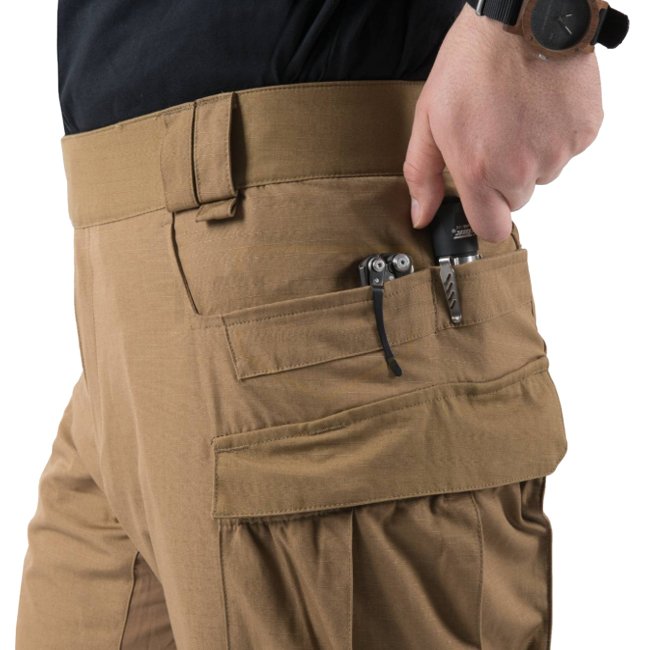 The MBDU Pants is a part of our advanced field uniform Modern Battle Dress Uniform. This uniform was made of top quality fabrics, carefully chosen to provide high durability as well as freedom of movement, which is utmost important on the battlefield. The pants have loose, profiled cut. The belt is fastened with the hook&loop tape that provides additional adjustment. Wide beltloops will support belt up to 45 mm wide, even with holster or magazine pouches. Gussets made of elastic VersaStretch fabric are placed on the back area and in the crotch for additional freedom of movement. Classic hip pockets have reinforcements on the edges to avoid being damaged by knife clips. Additional back pockets, with reinforced edges will fit larger items like carbine magazine. On the thighs there are large, spacious, buttoned cargo pockets. On lower legs there are smaller pockets, closed with hook&loop tape, that will fit essentials like field dressing.