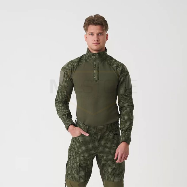 MCDU Combat Shirt by Helikon‑Tex is part of the Modern Combat Duty Uniform system and optimized for dynamic operations. The torso is made from lightweight, breathable TopCool® stretch polyester; the sleeves and stand collar use robust NyCo polycotton stretch ripstop for abrasion resistance and freedom of movement.