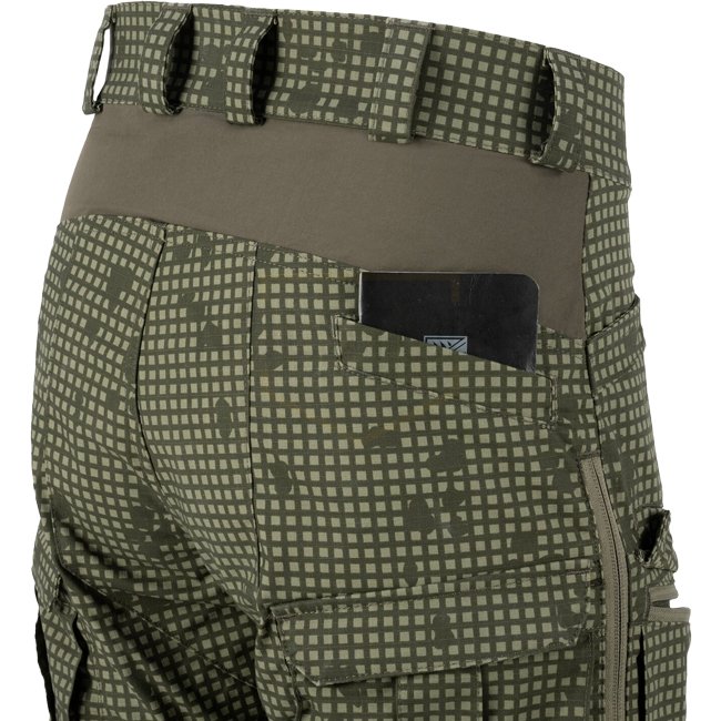 Inserts made of Versastrech material were used in key areas (waist, crotch and back of the knee). It dries quickly and is highly breathable. The knee area is reinforced with 500D Cordura fabric with slits for protective inserts. Thanks to additional cords located under the knee and at the bottom of the leg, the pants can be easily adjusted to the leg.