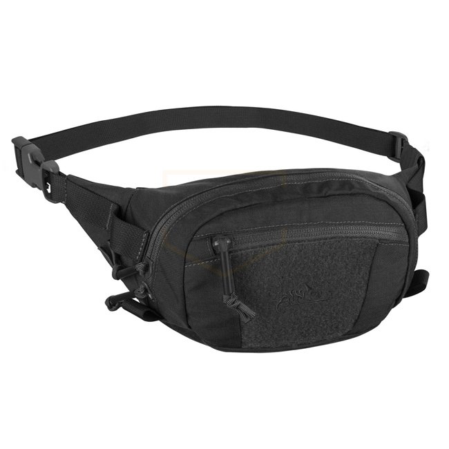 The Helikon-Tex Possum Waist Pack in Black is a versatile and compact urban equipment choice, featuring two zippered pockets, Velcro ID panel, detachable belt strap, MOLLE/PALS ribbons, and internal organizer. Left/right hand configuration with YKK zipper