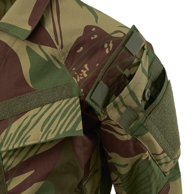 Helikon-Tex Raid Shirt in Rhodesian Camo XL crafted from Polycotton Stretch Ripstop. Comfortable, modern design with raglan construction and sleeve-collar connection, no shoulder seams for equipment comfort. Elbow reinforcements, pocket loops, and attachm