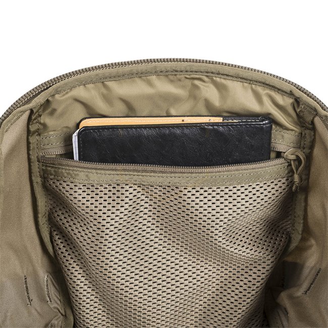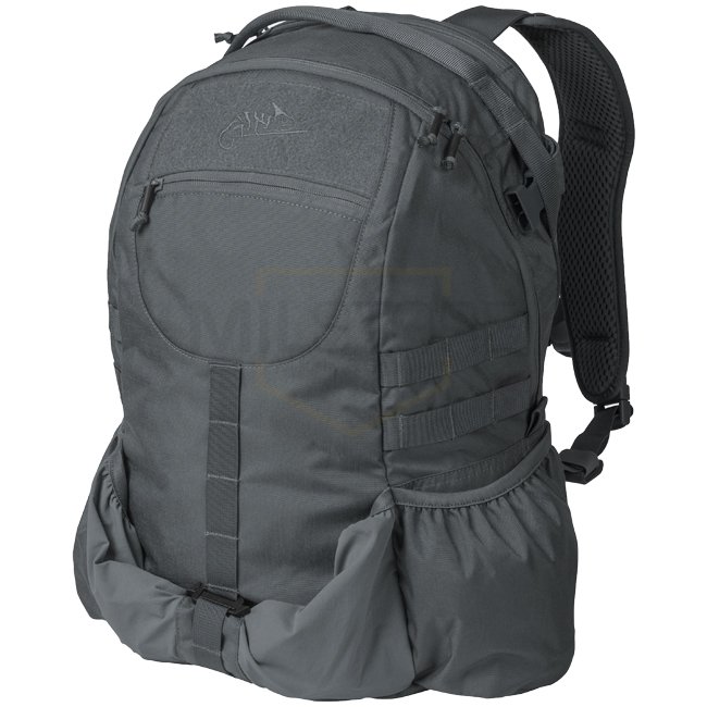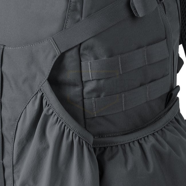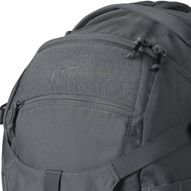 Military-grade Helikon-Tex Raider Backpack in Shadow Grey color, made of durable Cordura fabric. Comfortable carrying system, velcro ID panel, and main compartment lined with velcro. Features anatomical shoulder straps, hip belt, MOLLE/PALS system, YKK zi