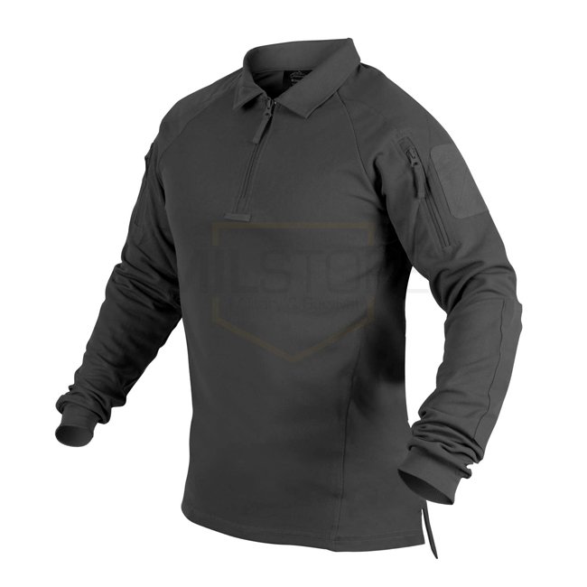 The Helikon-Tex Range Polo Shirt in black, size 3XL, is designed for shooting range use. Features quick-drying fabric, VersaStretch side covers, internal elbow pockets for protection pad inserts, and multiple functional pockets.