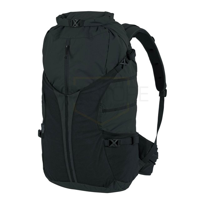 Helikon-Tex Summit Backpack - Black: Lightweight Cordura fabric, profiled shoulder straps, YKK zippers, rolltop, side mesh pockets, 40l capacity. Dimensions: 550x310x200mm. Weight: 1300g.