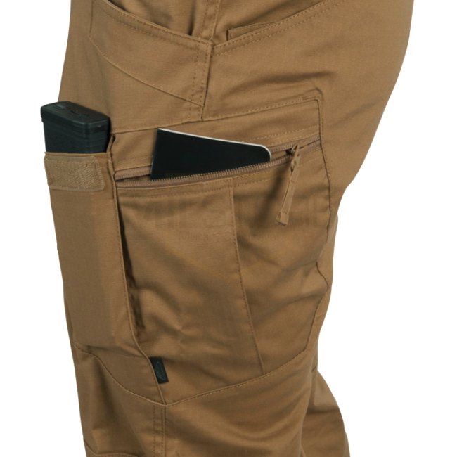"Some products have a kind of cult following. For each manufacturer facing a crowd of satisfied clients is not only enormous joy, but also confirmation that the product is right. What makes Urban Tactical Pants® so special? The cut and pockets layout employed in these pants maintain civilian enough outlook to retain anonymity, while retaining full functionality of combat pants, capable of supporting tactical essentials – at the same time not colliding with human anatomy. Elastic Velcro-closed belt allows easy adjustment. Wide belt loops allow as wide as 50 mm belt, including all HTX tactical belts: EDC, UTL® or Cobras®. Plus the cut employed, classical for blue jeans, reduced the tendency to ride down while in use. By judicious layout of the pockets, equipment can be placed close to the center mass, around the hips and waist. Front and rear pockets edges are reinforced to withstand constant movement of light or knife clips. Two Velcro-closed front pockets are big enough to carry a smartphone – or even an AR/AK rifle magazine. Thigh zippered pockets look flat – but its design allows pouches or wallets to be carried with ease. Bespoke internal pockets await being filled with Low Profile Protective Pads®. Three types of fabric plus wide variety of colors allows to match trousers to the rest of wardrobe or working conditions. Belt not included"