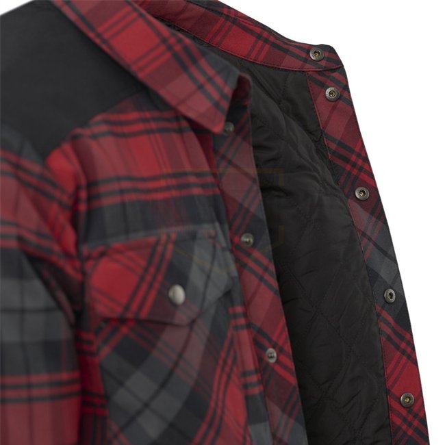 A classic plaid winter shirt with 60g/m2 lining for extra warmth. Features 7 pockets, reinforced shoulders, and snap fastener. Made from durable and quick-drying materials.