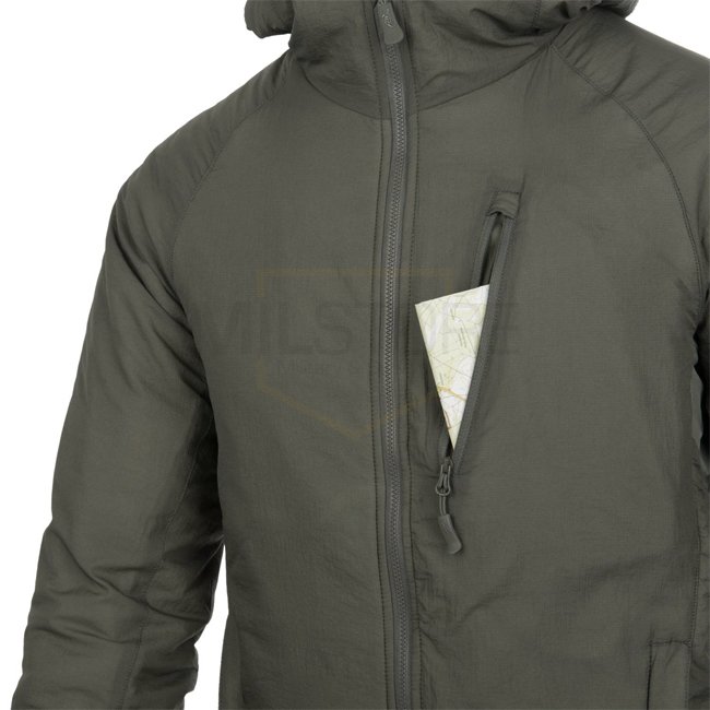 Stay warm and stylish with the Helikon-Tex Wolfhound Climashield Hoodie in PenCott Wildwood. Lightweight and packable, featuring Climashield Apex padding for extra warmth. Comes with multiple pockets, adjustable hood, and YKK zippers. Material: 100% Nylon