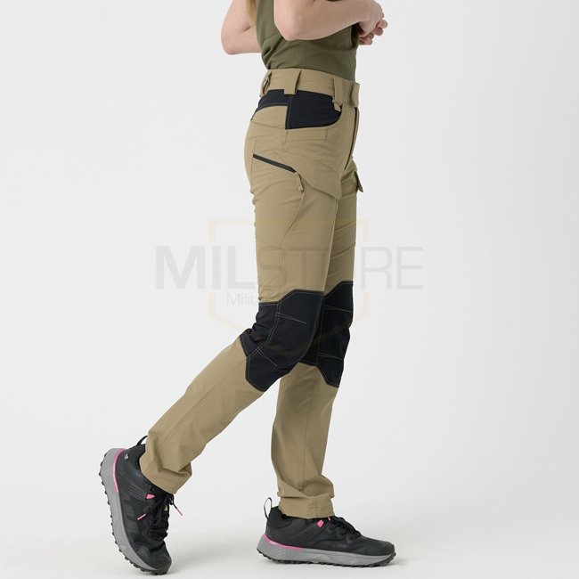 The Helikon-Tex Women's OTP Outdoor Tactical Pants in Taiga Green color, size S-Long. Made with VersaStretch® fabric for breathability and comfort. Features reinforced knees, multiple pockets, and DWR coating for protection against wind and rain.