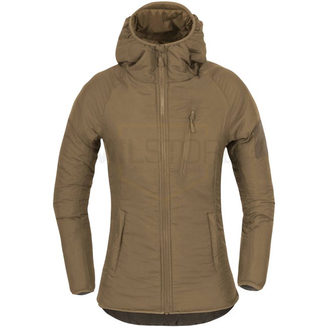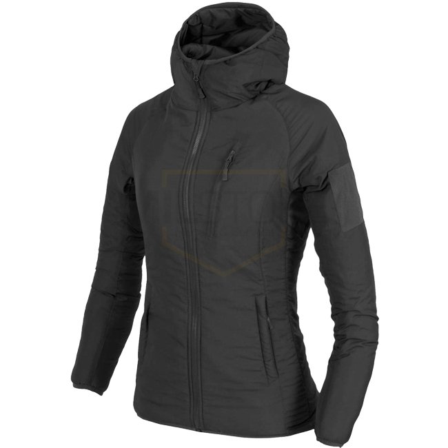 A lightweight and insulated jacket with a hood, the Helikon-Tex Women's Wolfhound Hoodie Jacket in Black XS features a protective DWR layer for light rain resistance. Climashield® Apex™ insulation ensures thermal comfort even when wet. Wind-resistant nylo