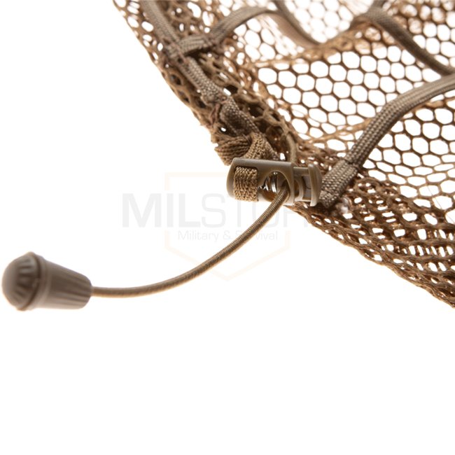 Invader Gear Sniper Base Mesh - Coyote: Lightweight camouflage suit for snipers with improved camouflage properties, adjustable chest buckles, oversized mesh hood, integrated cloak for customization. Ensure visibility control and environment blending.