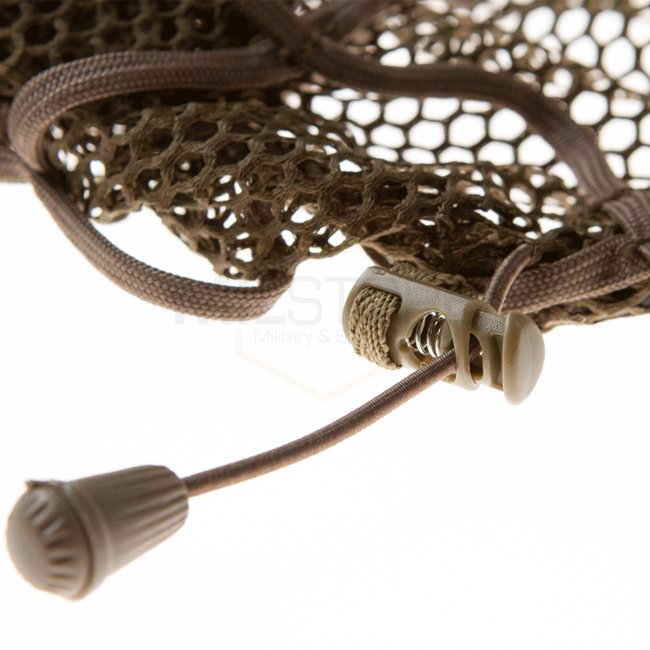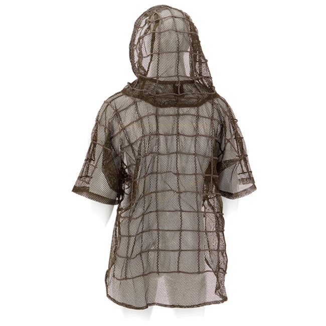 Typically worn over the base layer of the uniform and worn gear, this minimalist coverall is constructed from a lightweight, solid color mesh material. The basis of the suit is a combination of a bolero-style cover and a camouflage netted cape. The adjustable chest buckles and shock cords integrated into the sleeves provide the wearer with a high level of regulation and comfort, while allowing access to chest-worn gear.